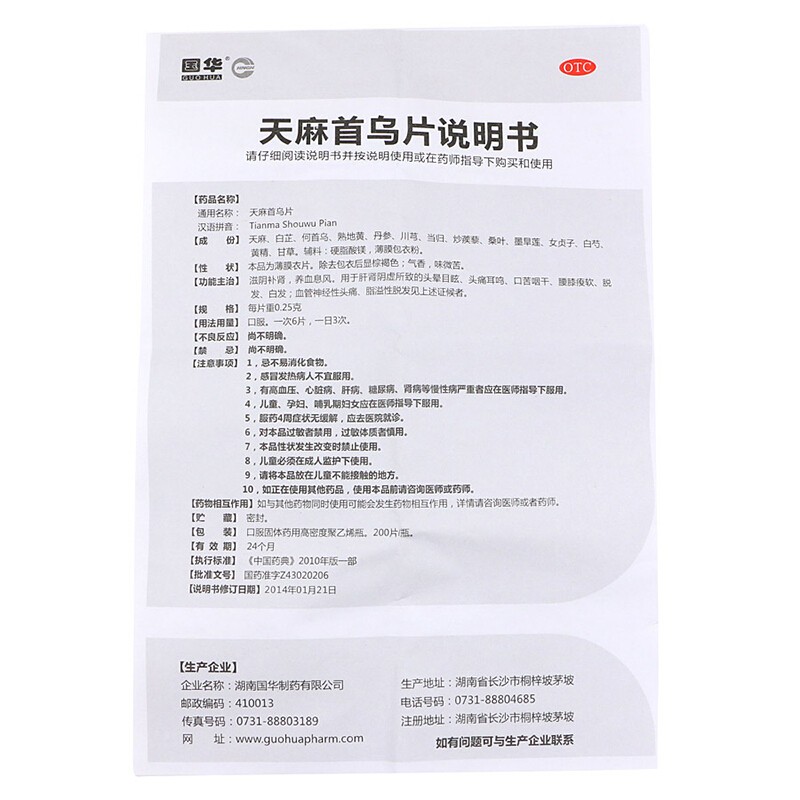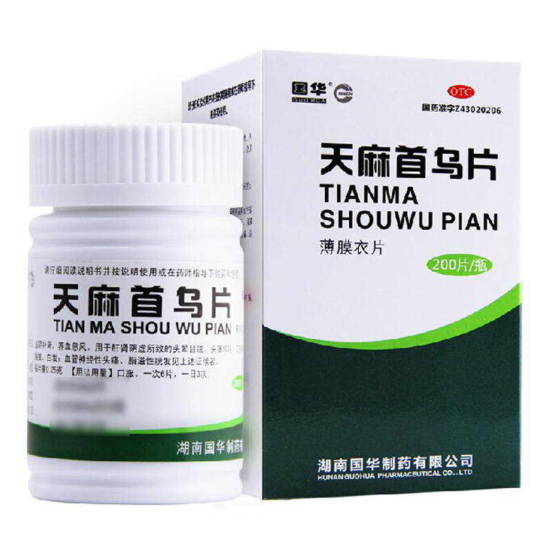 Guohua Tianma He Shouwu Tablets 200 Tablets Nourishes Yin and Supplements Kidney, Nourishes Blood and Relieves Wind