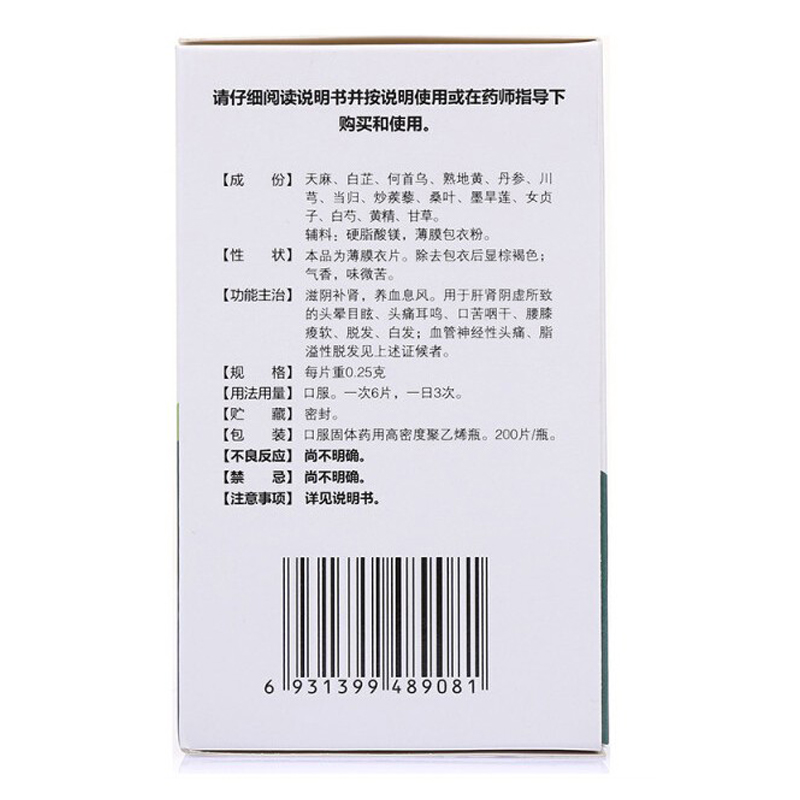 Nourishing yin and nourishing kidney, hair loss, tinnitus, nourishing blood, white hair, dizziness, seborrheic alopecia, dizziness, nervous headache, kidney yin deficiency, wind