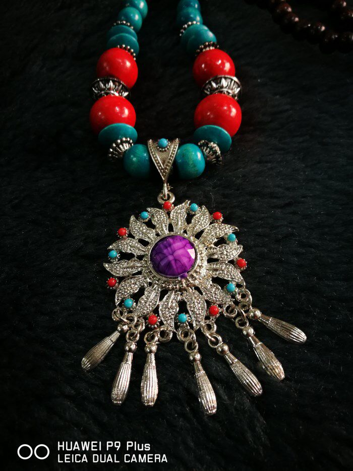 Necklace Mongolian characteristic handicraft necklace lady totem hanging chain jewelry ethnic retro style necklace batch