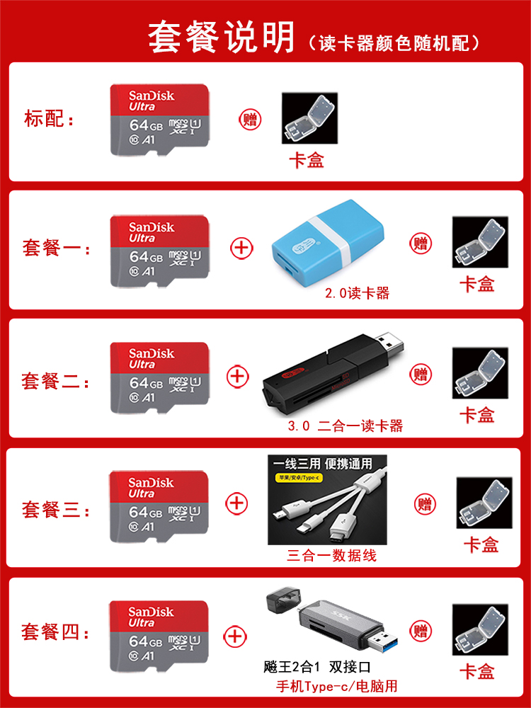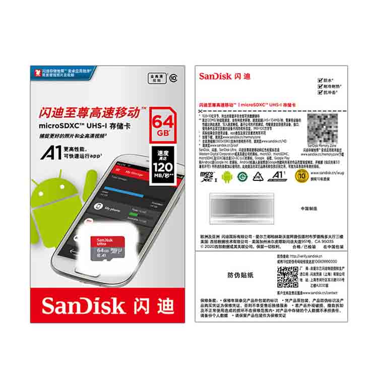 Sandisk SanDisk TF card 64G SQUNC reads 120M Android mobile phone tablet gaming console universal memory card