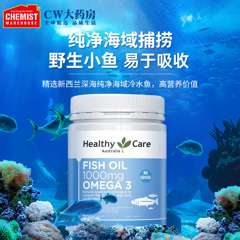 HealthyCare Deep Sea Fish Oil Soft Capsule 400 Grains Middle-aged bright Double Eyes Omega Australia Imports