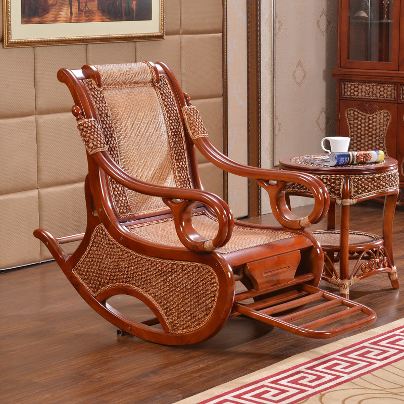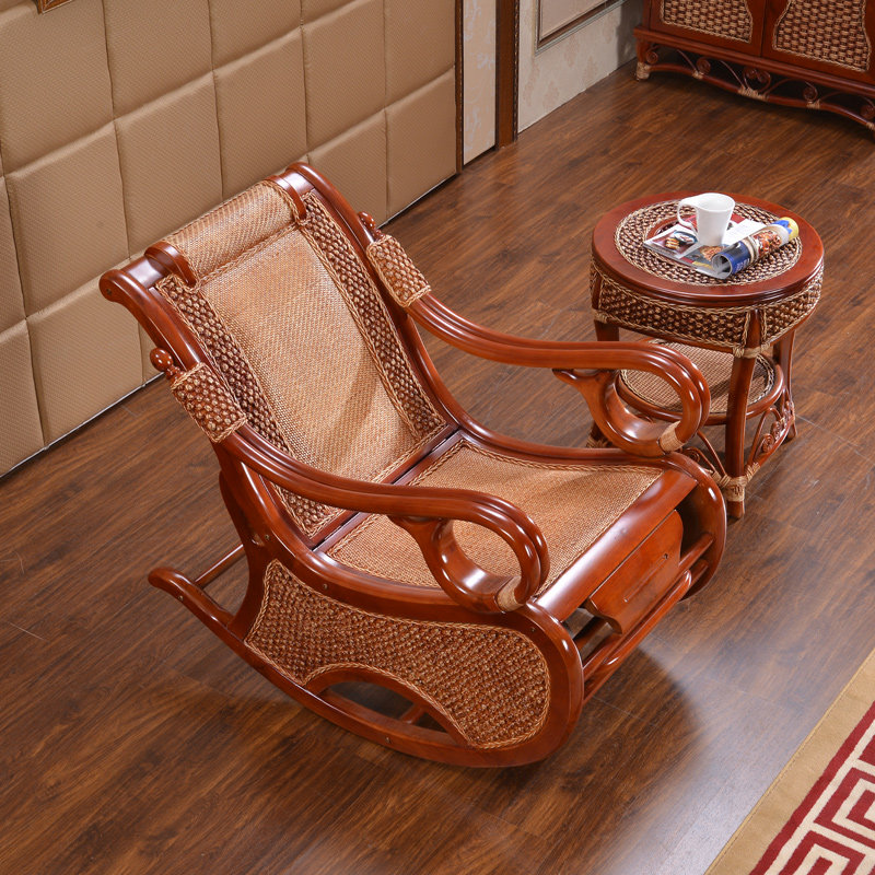Tea table (paired with sales single for no) rocking chair (red wood colour) HC942 (Indonesian real vine) rocking chair (light colour) (three-year warranty)