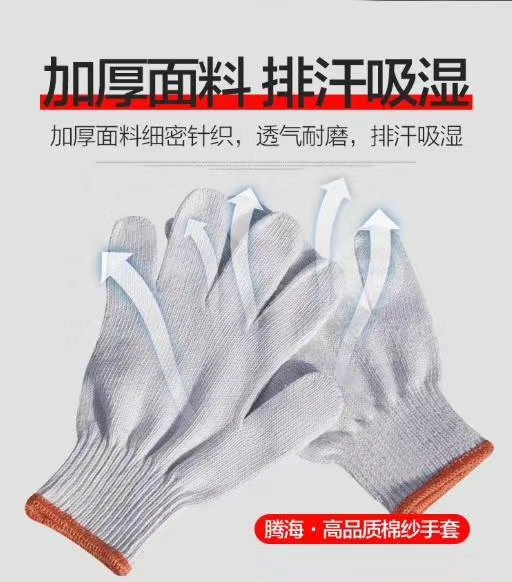 Tenghai yarn protective gloves thin line encrypted labor insurance gloves thickened work gloves 600 grams wear-resistant king ten needles