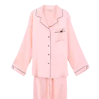 Yufu heavy silk pajamas women long sleeve home two-piece solid color simple shirt style can be worn outside Limited