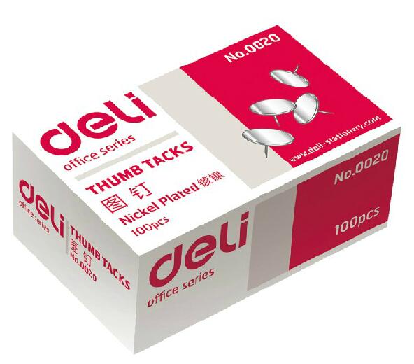Deli stationery office supplies large pushpin NO 0020 metal round head pushpin 100pcs box 10 box price