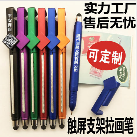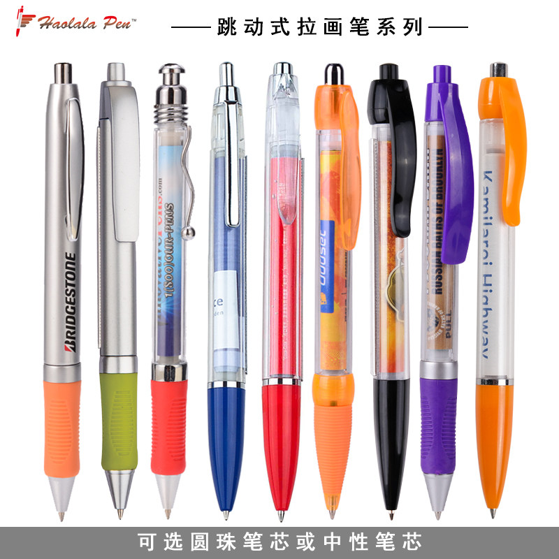 Pull Brush Advertising Pen Custom Logo Draw Lart Paper Round Bead Neutral Water-based Pen Two Dimensional phone frame Touch screen