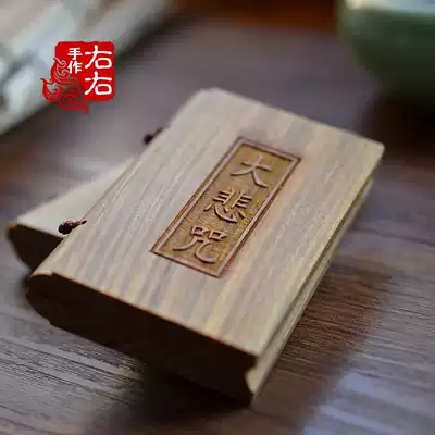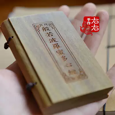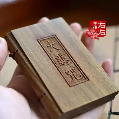 Natural green sandalwood book Guanyin great tragedy curse Po Mita Heart Sutra wooden Buddhist scriptures solid wood book send bag