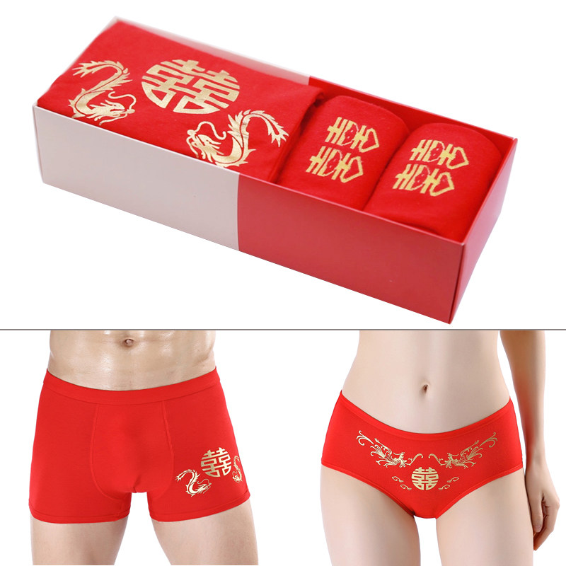 Wedding Red Briefs Pure Cotton Men's Four Corner Pants Lady Triangle Pants Lovers Big Red and Festive Items