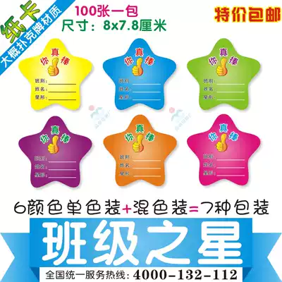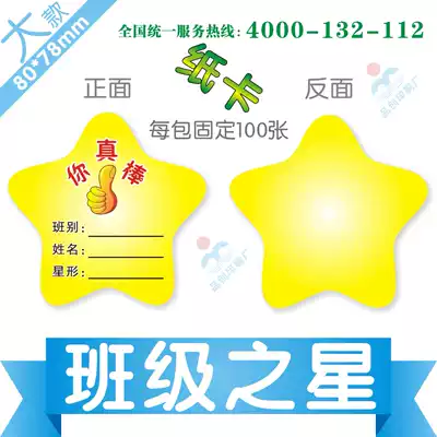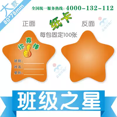 Paper card Class Star Primary school student teacher reward Orange red Yellow blue Encourage praise card Extra points card
