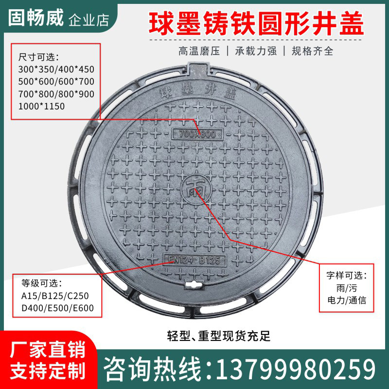 Ductile Iron Well Lid Round Rain Sewage Sewer Manhole Cover Square Manhole Cover Shady Electricity Manhole Cover Cover Plate