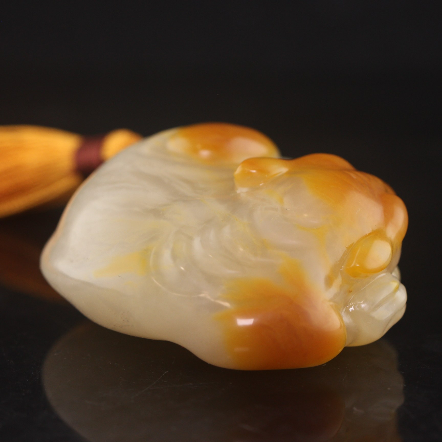 Pauli Shizuo Guangdong Yellow-white Lichei Frozen Licheng Handle Handick Playing Jade Carving Collection