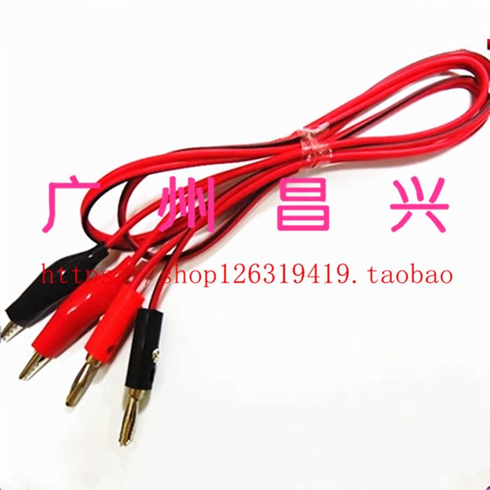 Banana plug to crocodile clip line Banana head power test lead 2 plugs to 2 clips red and black wires 1 meter long