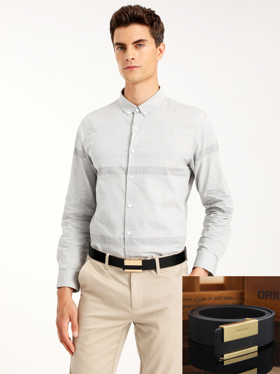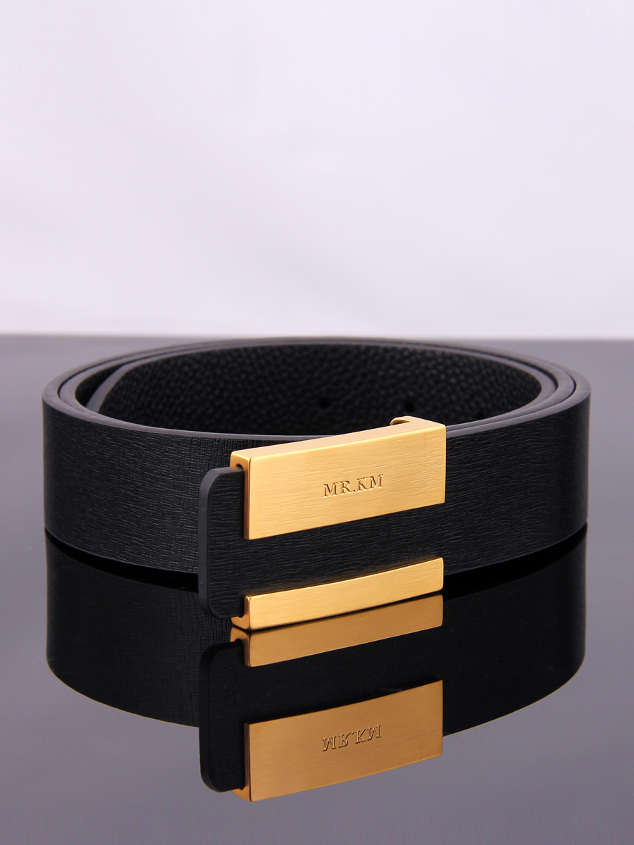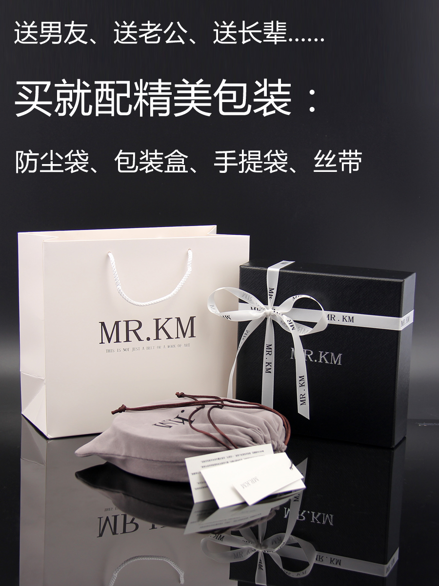 MR KM Fashion Fashion Fashion Belt Men's Smooth Belt Men'skins with leisure middle - aged youth copper button