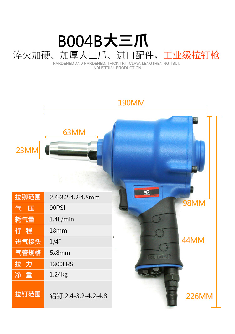 Speed leopard B004B Pneumatic gun pull nail gun three claw gun pliers Rivet gun rivet pliers 2 4-4 8mm