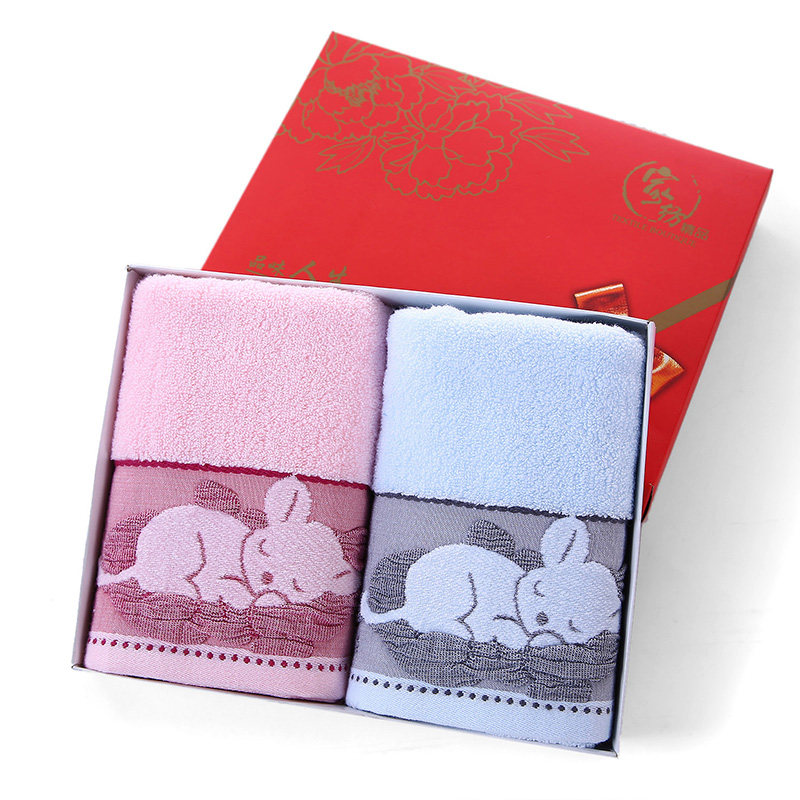 Couple towels pure cotton creative cartoon a pair of gift box sets for adult children soft 2 pairs of face washing household
