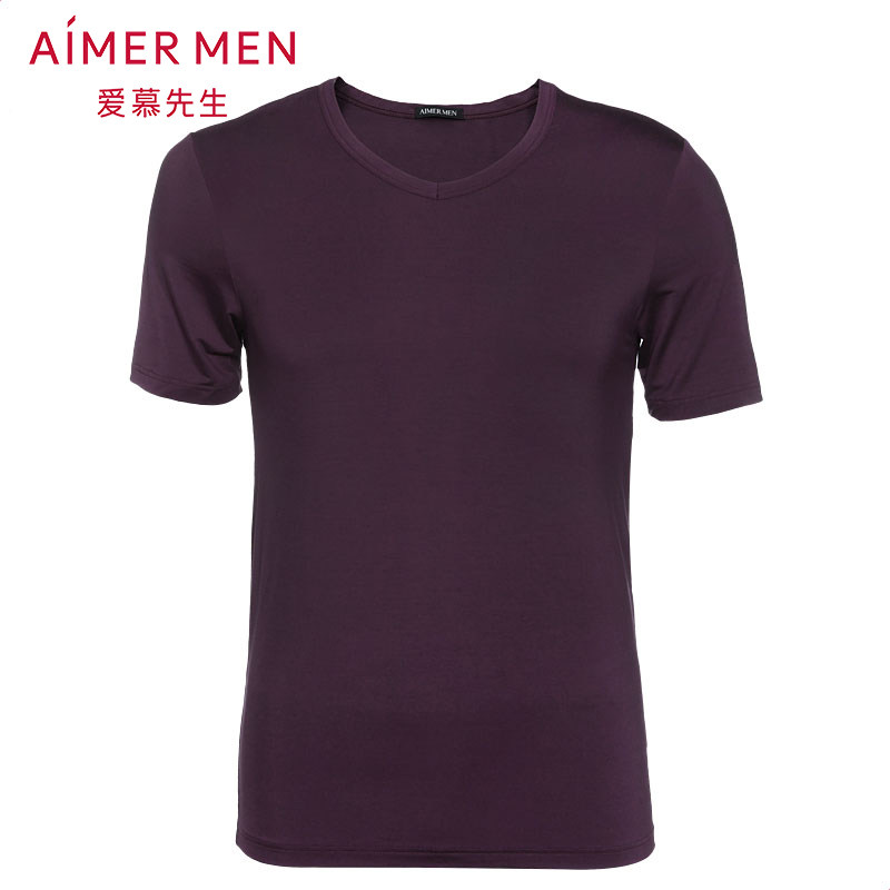 Mr. AIMER New Product 50S Modale Men's thin Elastic Home Autumn Winter Short Sleeve V Collar Blouse NS12S11