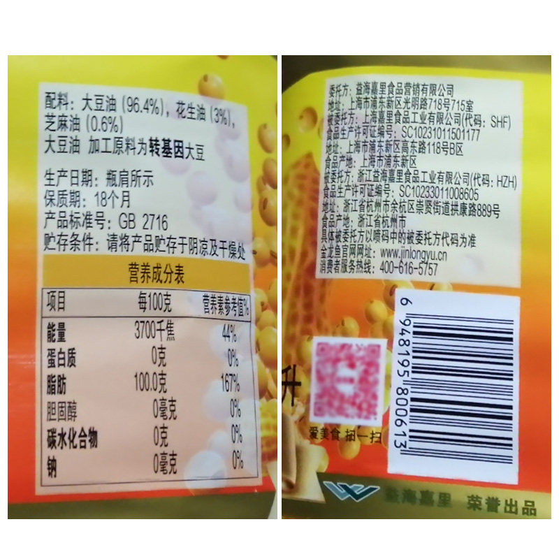 Golden Dragon Fish Peanut Strong Aroma Edible Tone and Oil 5L Bottle Family Kitchen Healthy Nutrition Oil Group Purchase Wholesale