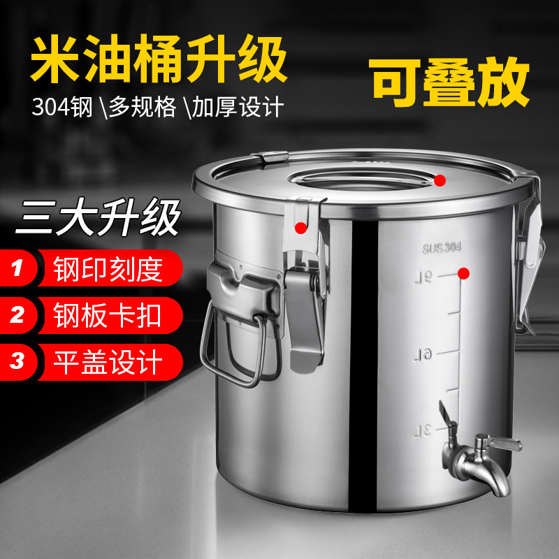 304 stainless steel rice bucket storage rice box household rice noodle bucket 10kg rice cylinder grain storage tank oil bucket moisture-proof insect-proof