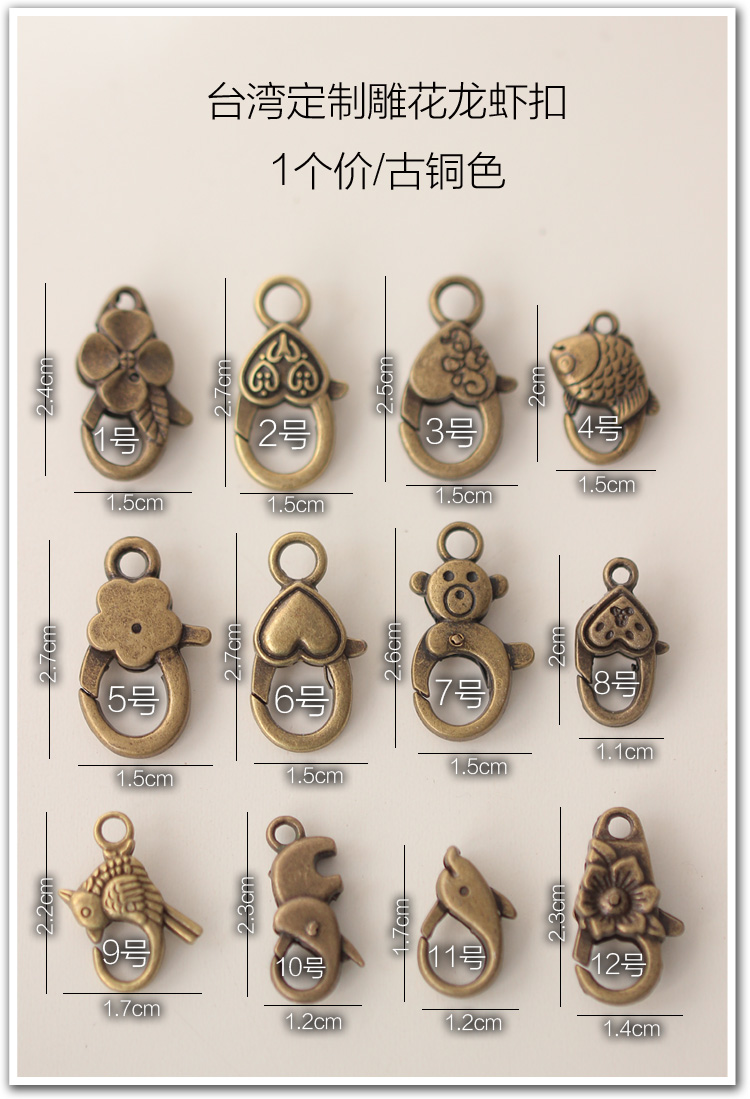Taiwan Order Retro Carved handmade DIY ornament accessories Hand necklace Connecting buckle ancient bronze color lobster buckle