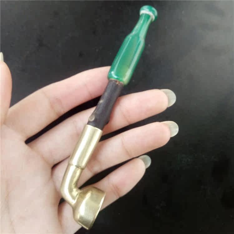 Personality handheld small dry cigarette bag Green Manau cigarette holder Skywood Tobacco Rod Brass Smoke Pot Portable Small Smoking