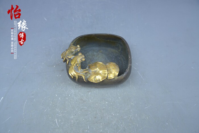 Antique antique copper household room furniture parts 10 Brass gold gold drama lotus leaf pen wash old goods collection