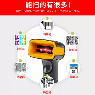 Net hundred scanner scanner Wireless scanner Agricultural supermarket express one-dimensional two-dimensional barcode laser wired gun bar grab WeChat Alipay payment scanner Handheld payment scanner