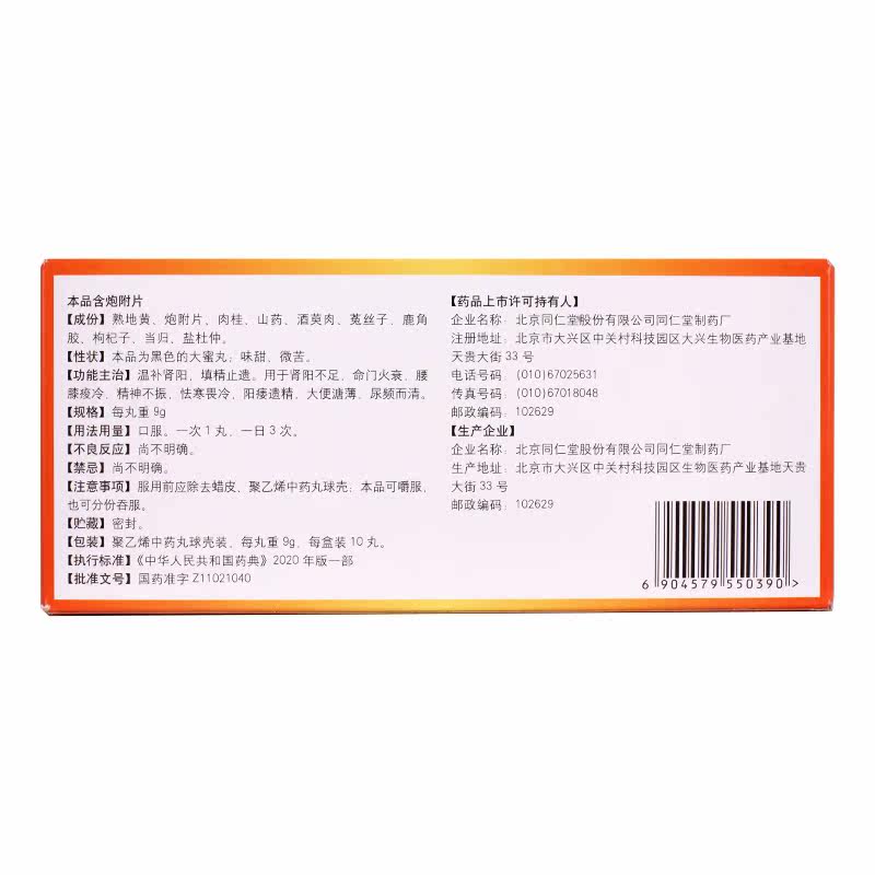 Multiple boxes as low as 43 8 boxes) Tongrentang Yougui Pills 9g*10 pills, warming and tonifying kidney yang, replenishing essence and arresting nocturnal emission, insufficient kidney yang, sore waist and knees, lack of energy, chills and chills, impotence and nocturnal emission