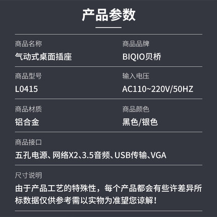 Beiqiao L0421 desktop socket pneumatic in-line multimedia socket with bottom box network power socket