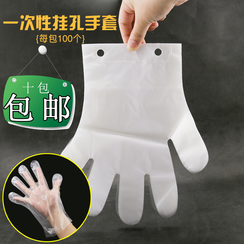 Thickened Disposable Gloves Transparent Hanging Hole Gloves McDonald's Kitchen Durable 10 Pack Dining Home Gloves
