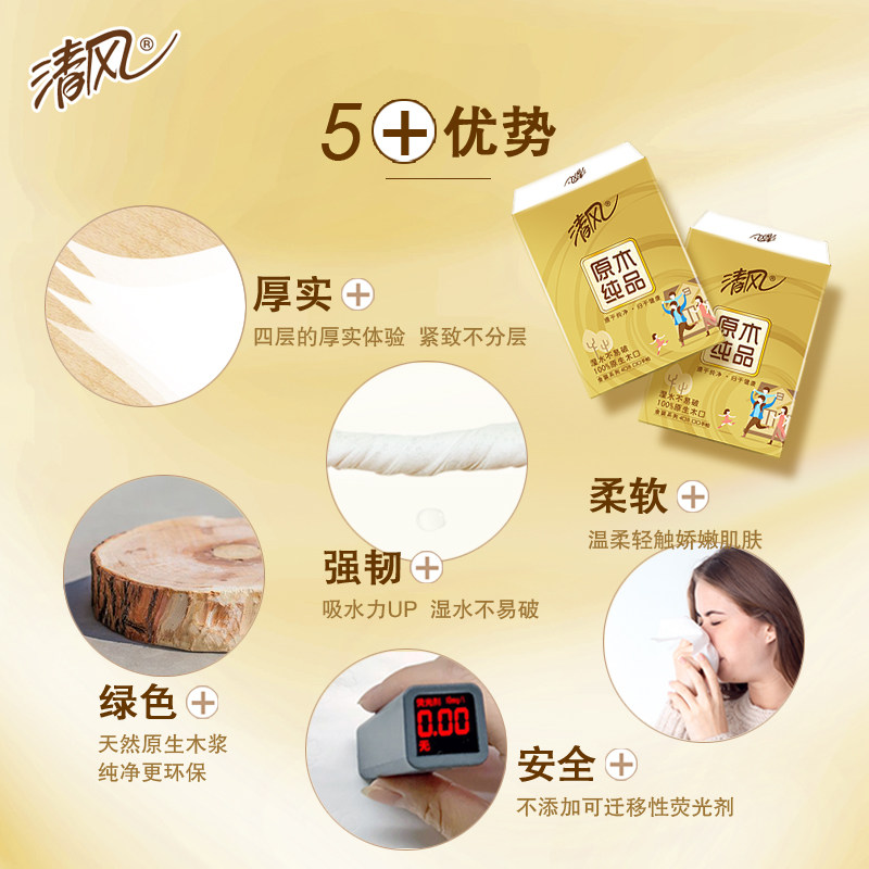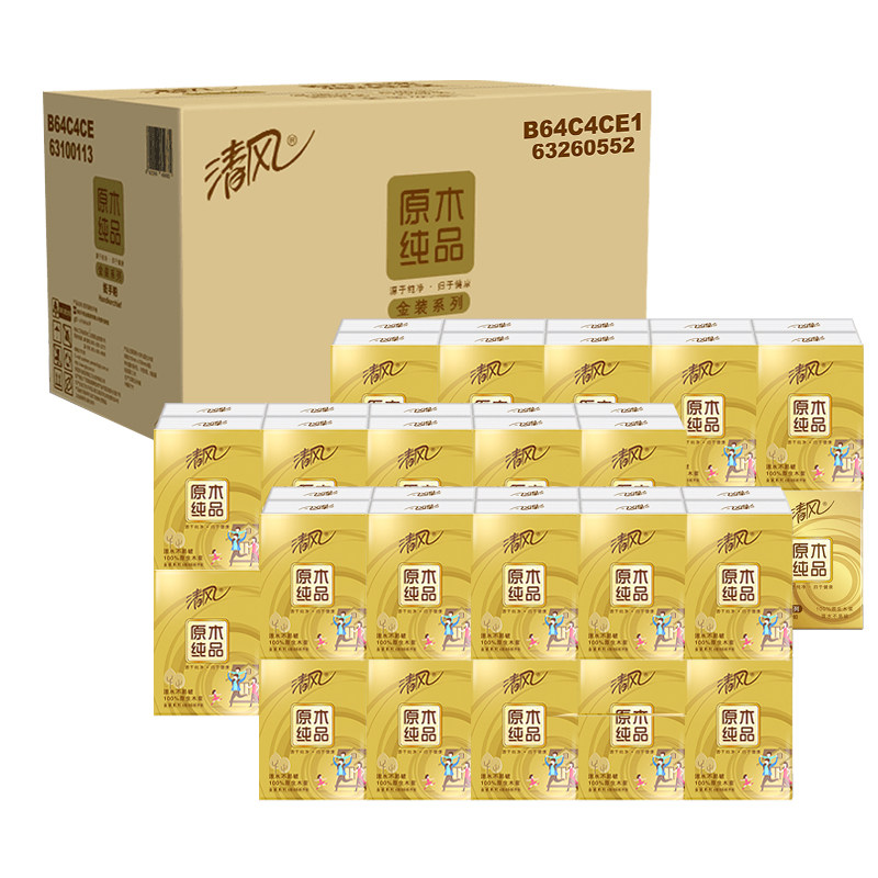 Qingfeng gold paper handkerchief 4-layer 60-pack portable toilet paper napkin Toilet paper small tissue paper whole box of affordable packaging