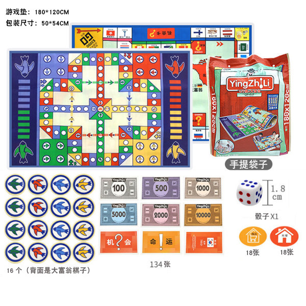 Flying chess single-sided gift box set Huaying large double-sided monopoly Flying chess Huaying large monopoly Flying chess large dice Huaying double-sided 120*90*0 5cm large dice bag