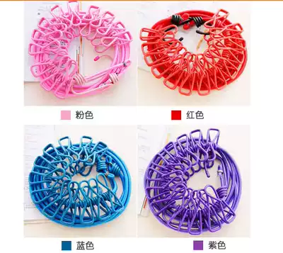 Travel outdoor travel portable elastic belt adhesive hook windproof non-slip clothesline clothes rope with clip