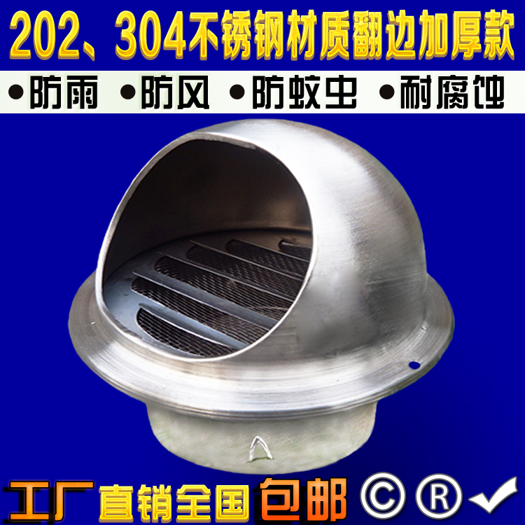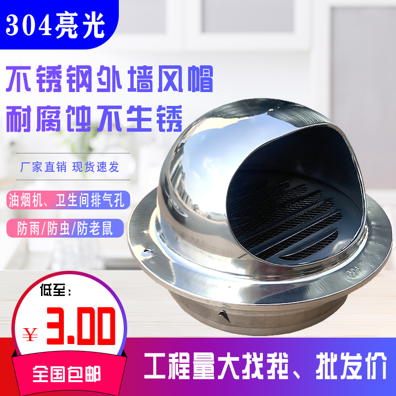 Range hood exhaust pipe outlet 304 stainless steel wind cap anti-ventilation and rain-proof exterior wall wind cover flue exhaust cap
