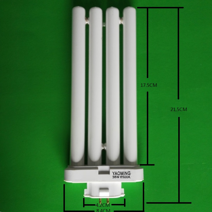 2H type 36W square four-pin four-row tube plug-in 6500K white pure three-primary color energy-saving fluorescent tube