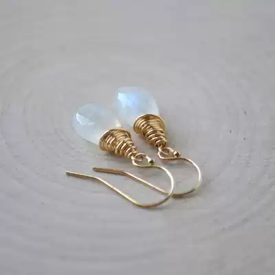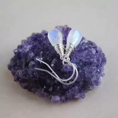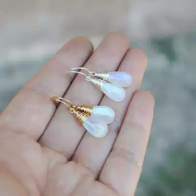 Bottom△American hand-made limited edition special beautiful water drop type glitter rainbow moonstone earrings