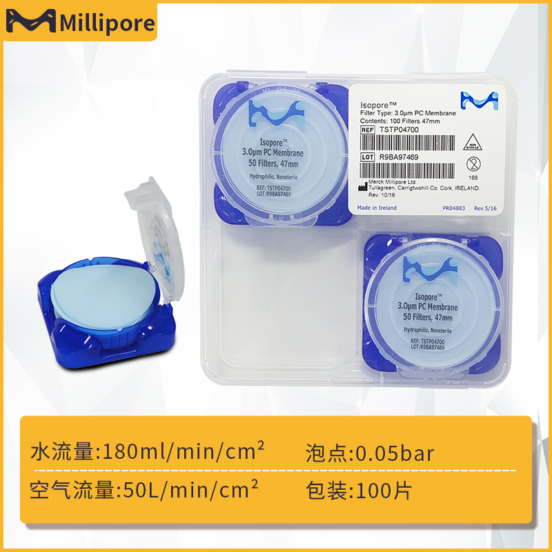 American Millipore Miribo polycarbonate PC hydrophilic filter membranes TSTP04700 02500 3um