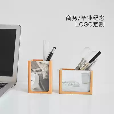 Fanhan solid wood photo frame pen holder Photo business customization Graduation memorial office desktop stationery storage box