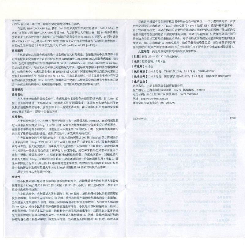 Treatment of chronic adult hepatitis B in a 5mg*7-piece box of BARACLUDE Borudine Entecavir tablets (as low as 139 boxes)