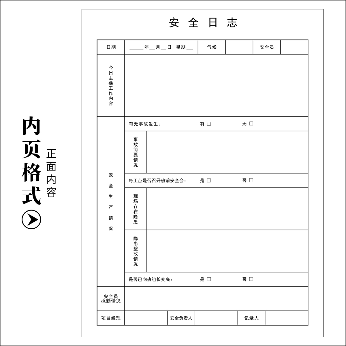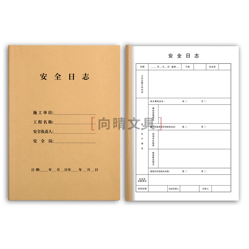 Safety log book building decoration construction supervision record book A4 double-sided general 10 management diaries