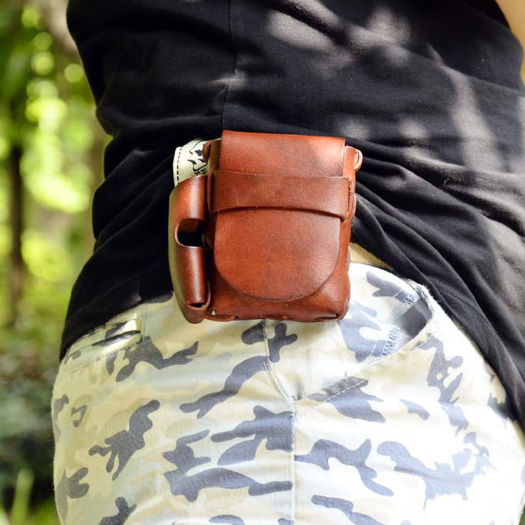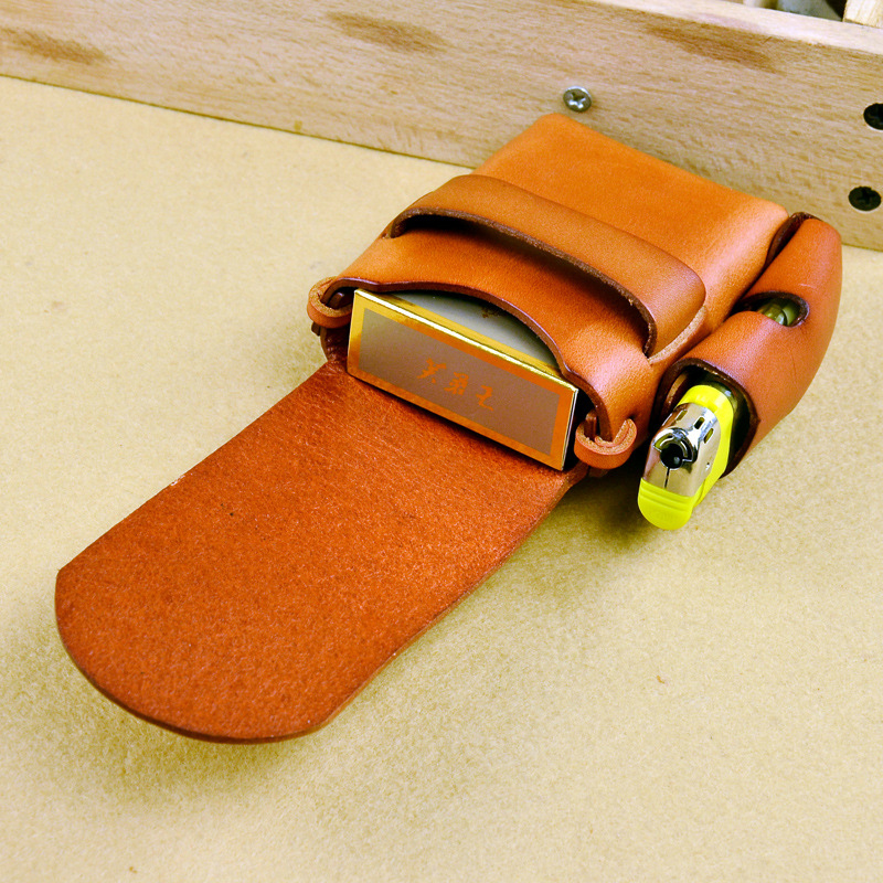 First layer cowhide retro men's dual-use lighter cigarette case hand-worn belt pocket leather storage cigarette case leather case