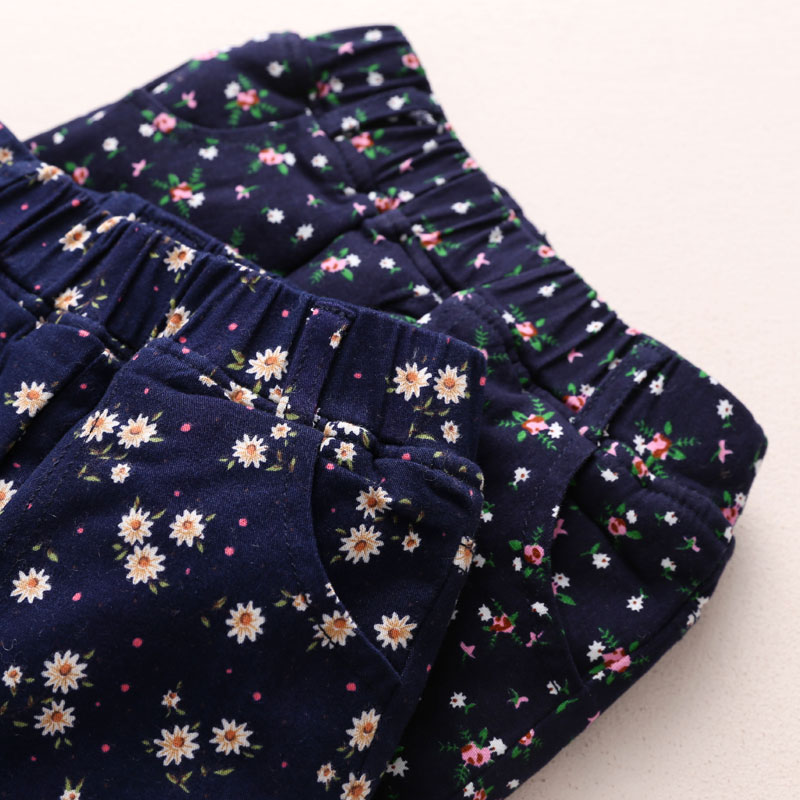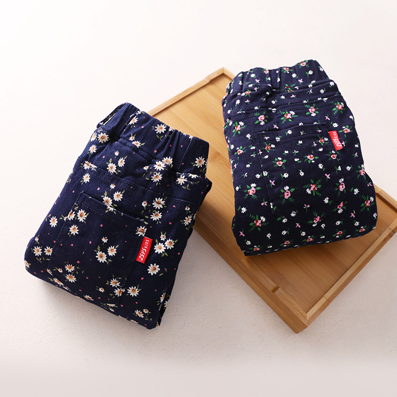 Baby Crushed Flowers Cotton Pants 2021 Winter Dress New Girl Child Thickened clip cotton long pants kz-7911