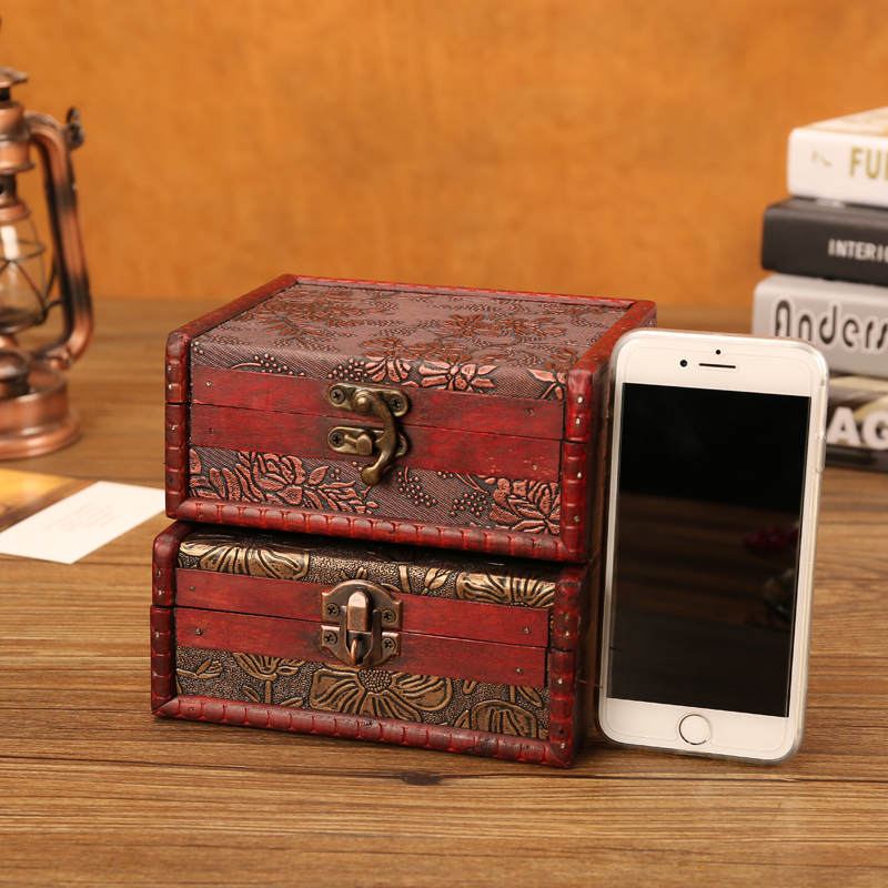 Retro wood box with lock containing box Jewelry Small Case Wood Storage Candy Packing Box Mini-room props