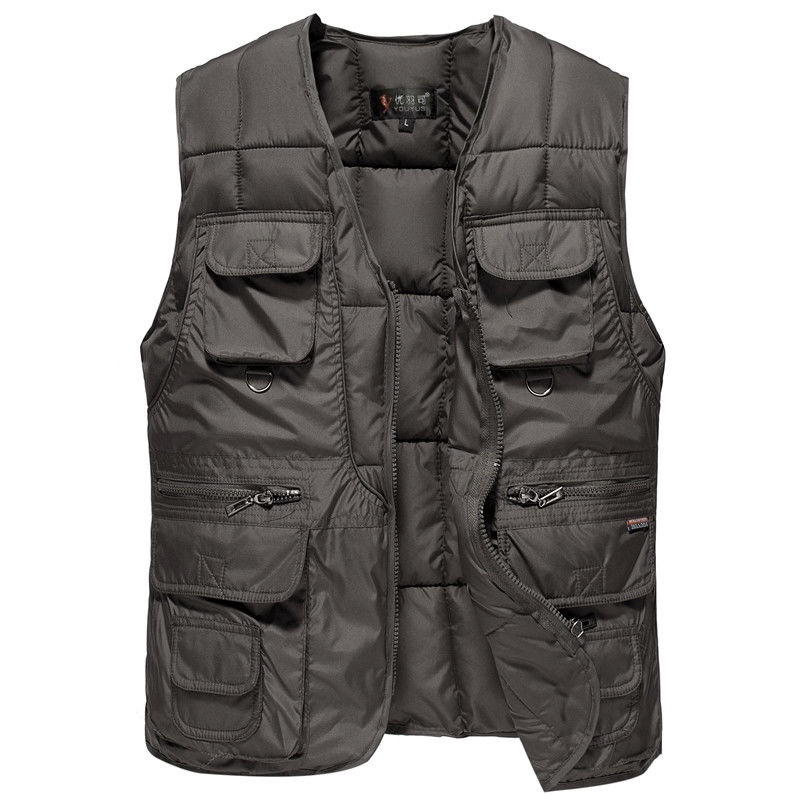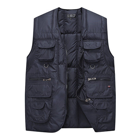 Winter down cotton vest men's fishing multi-pocket thick cotton waistless sleeveless warm cotton vest middle-aged men's