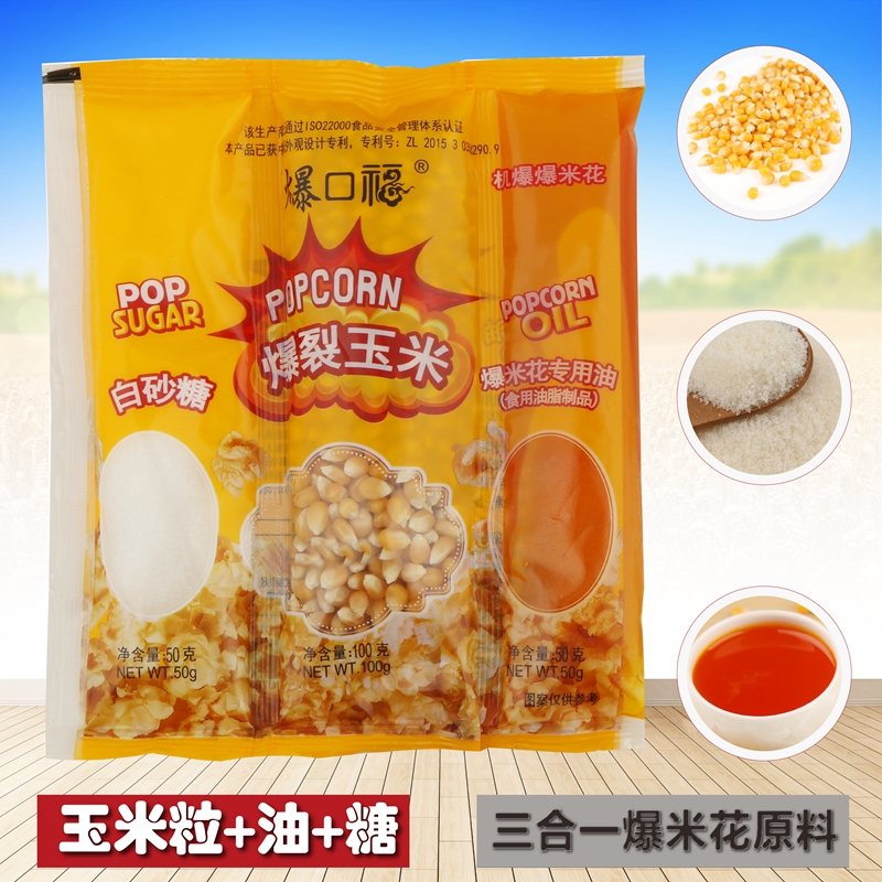 Popcorn Fu Three-in-one Popcorn Raw Material Corn Grain Special Sugar Milk Oil Taste Home Commercial Machine Material Package