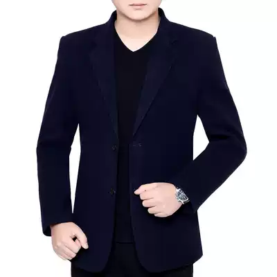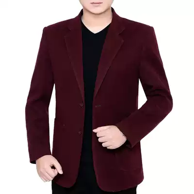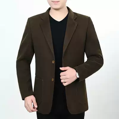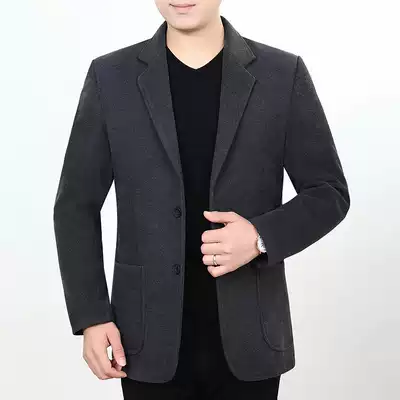 Middle-aged suit men's casual autumn and winter loose solid color middle-aged and old thick suit men's coat single West Coat dad