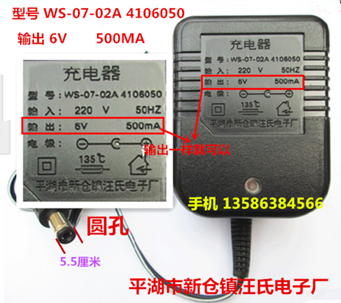 Wang's Round Hole 6V500MA Charger Wang's Round Hole 6V700MA Charger