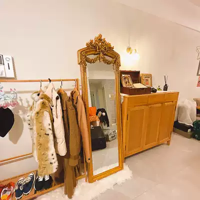 European-style retro carved full-length mirror Home bedroom cloakroom wall-mounted French full-length mirror Full-length mirror Floor-to-ceiling mirror