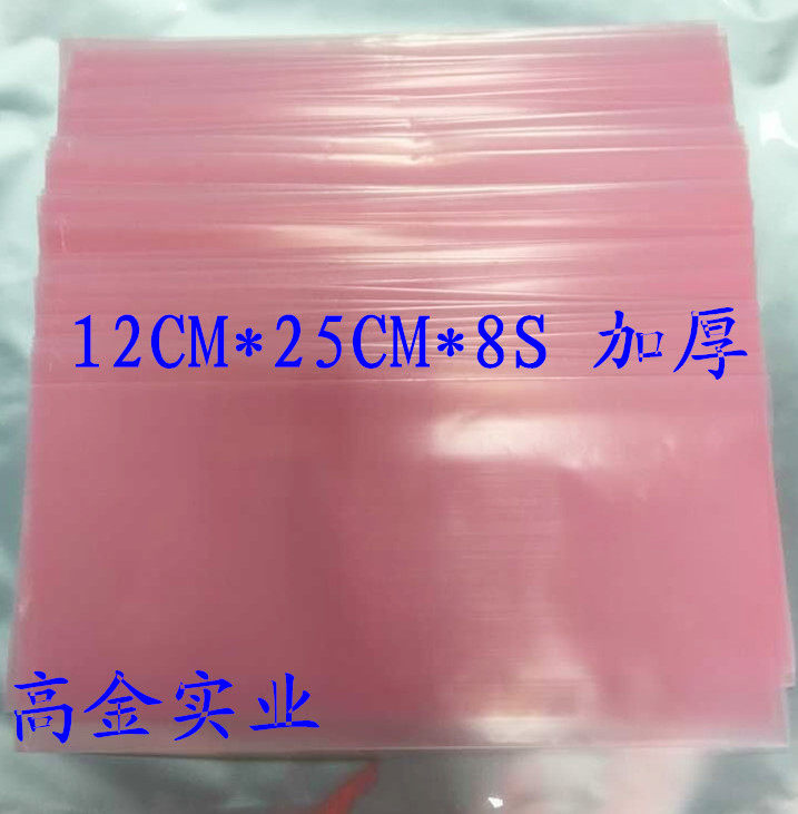 Antistatic pink PE flat pockets packing bag 12cm * 25cm * 8S thickened type