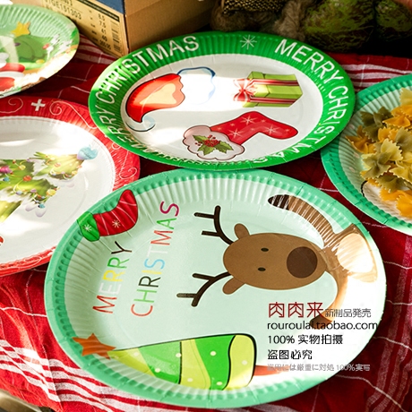 Paper plate (6 types of 2 each = 12 pieces) paper cups (6 types of 2 each = 12 pieces) PVC disposable tablecloth APVC disposable tablecloth B Christmas elements 4 types mixed stripe bright colors 4 types