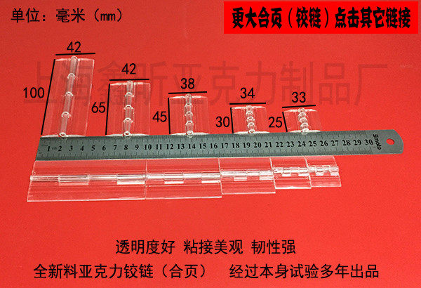 Manufacturer direct sale ultra-strong adhesive transparent acrylic large hinge hinge organic glass transparent hinge big hinge